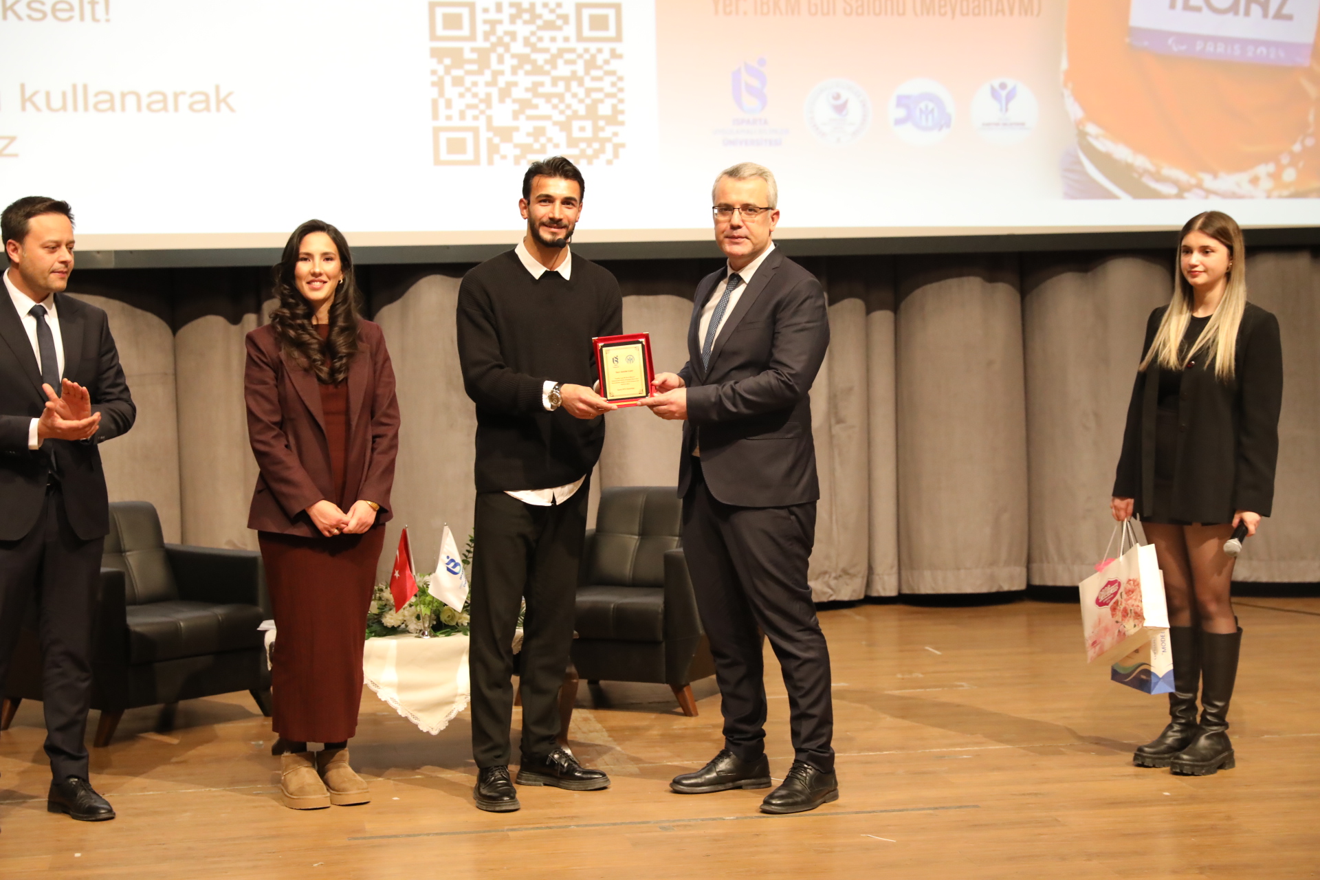 Söyleşi sonunda Isparta Vali yardımcısı Hasan Hüseyin Vural, milli paralimpik atlet Abdullah Ilgaz'a günün anlam ve önemine binaen plaket verdi. Ayrıca Isparta Gençlik Spor İl Müdürü Çağrı Murat Kaya ise milli atlete Isparta yöresel sepetini takdim etti. Ayrıca Rektör yardımcımız Prof. Dr. Ramazan Özçelik ise konuğumuzun eşine gül ve lavanta fidanı vererek, konuklara teşekkür etti.
