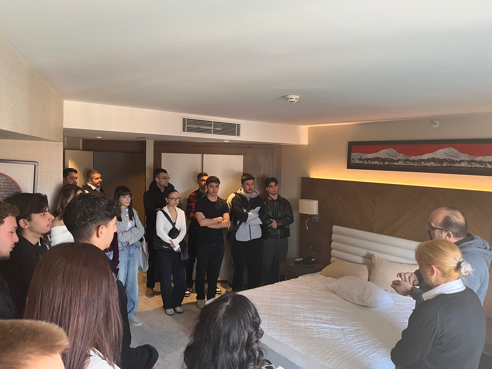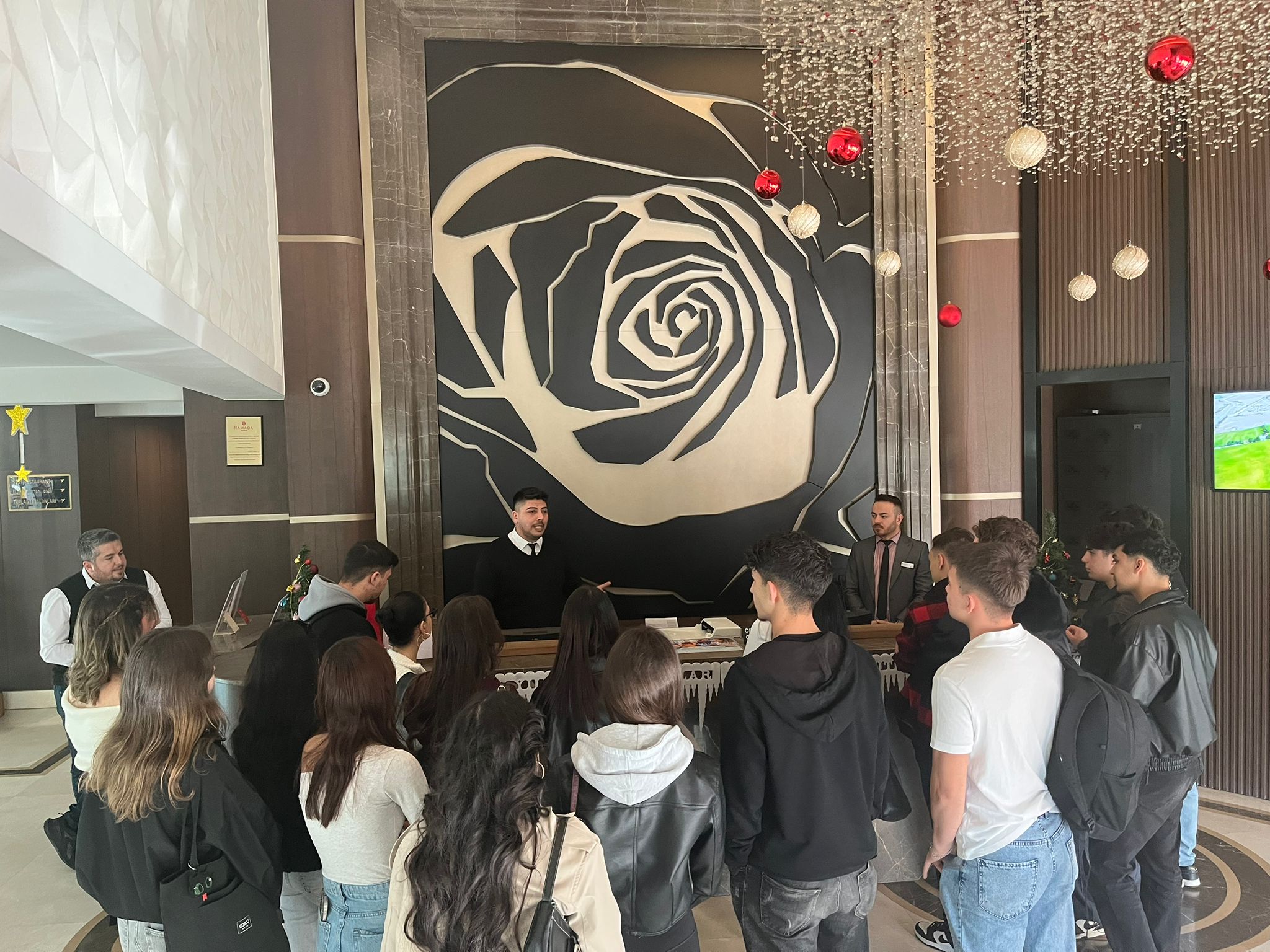 Öğrenciler, otelin çeşitli departmanlarında yiyecek-içecek işletmeciliğine, resepsiyon hizmetlerinden kat hizmetleri departmanlarına kadar pek çok alanda yapılan uygulamalar ile öğrencilere sektörün işleyişini daha yakından tanıma imkânı sağladılar. Ayrıca yöneticiler tarafından otel işletmesi kapsamında güncel verilerle simülasyon gerçekleştirilerek, daha çok nicel olarak karar alma mekanizmasına ilişkin öğrencilere yerinde deneyimleme imkanı sağlandı.