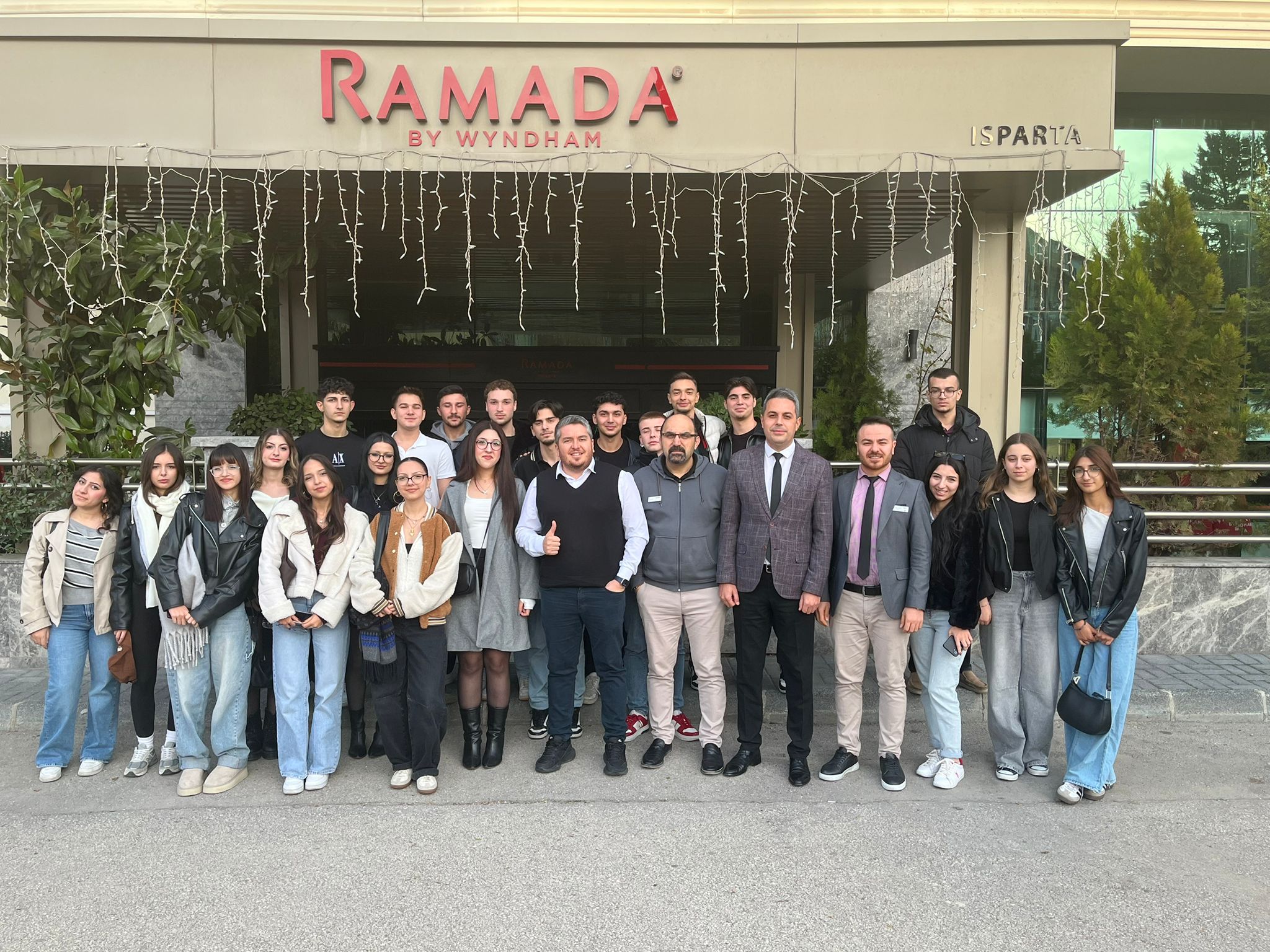 Isparta Meslek Yüksekokulu Turizm ve Otel İşletmeciliği programı öğrencileri, Öğretim Görevlisi Cemalettin Güven eşliğinde sektörün öncü işletmelerinden biri olan Ramada Otel’e düzenledikleri teknik gezi kapsamında, turizm sektöründeki profesyonel uygulamalar ve otelcilik hizmetlerine dair derinlemesine bilgi edinme fırsatı buldular. Bu ziyaret, öğrencilerin teorik bilgilerini pratikte gözlemleyerek, mesleki gelişimlerini desteklemeyi amaçlamıştır.