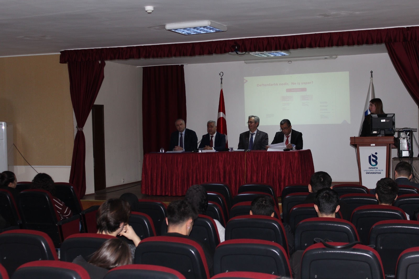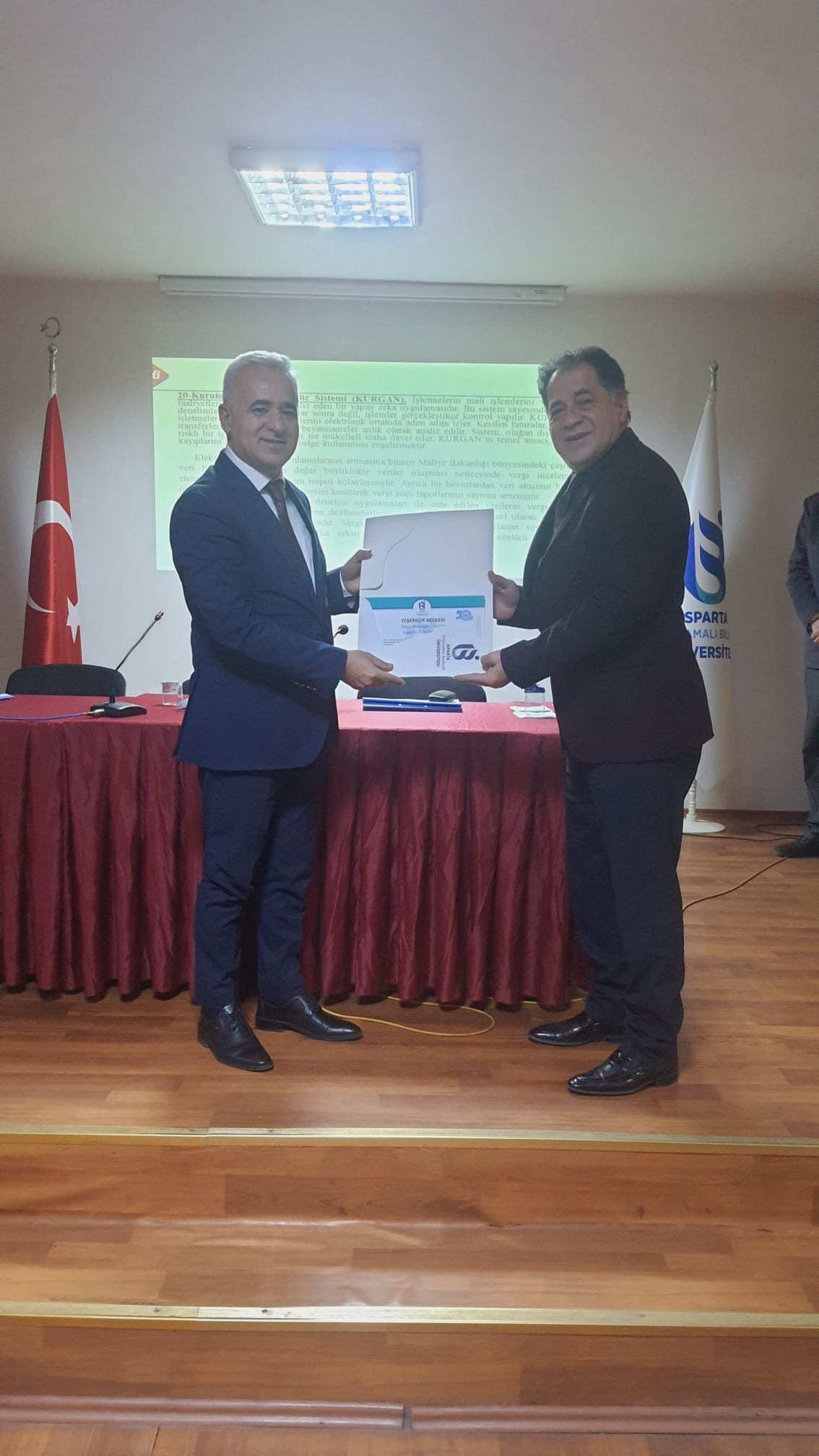 Konferansa konuşmacı olarak Isparta İl Defterdarı Mustafa ERDEM, Gelir idaresi Grup Müdürü Barış SAVAR, Gelir Yönetimi ve Denetim Müdürü Erol KANTAR katılım sağladı.