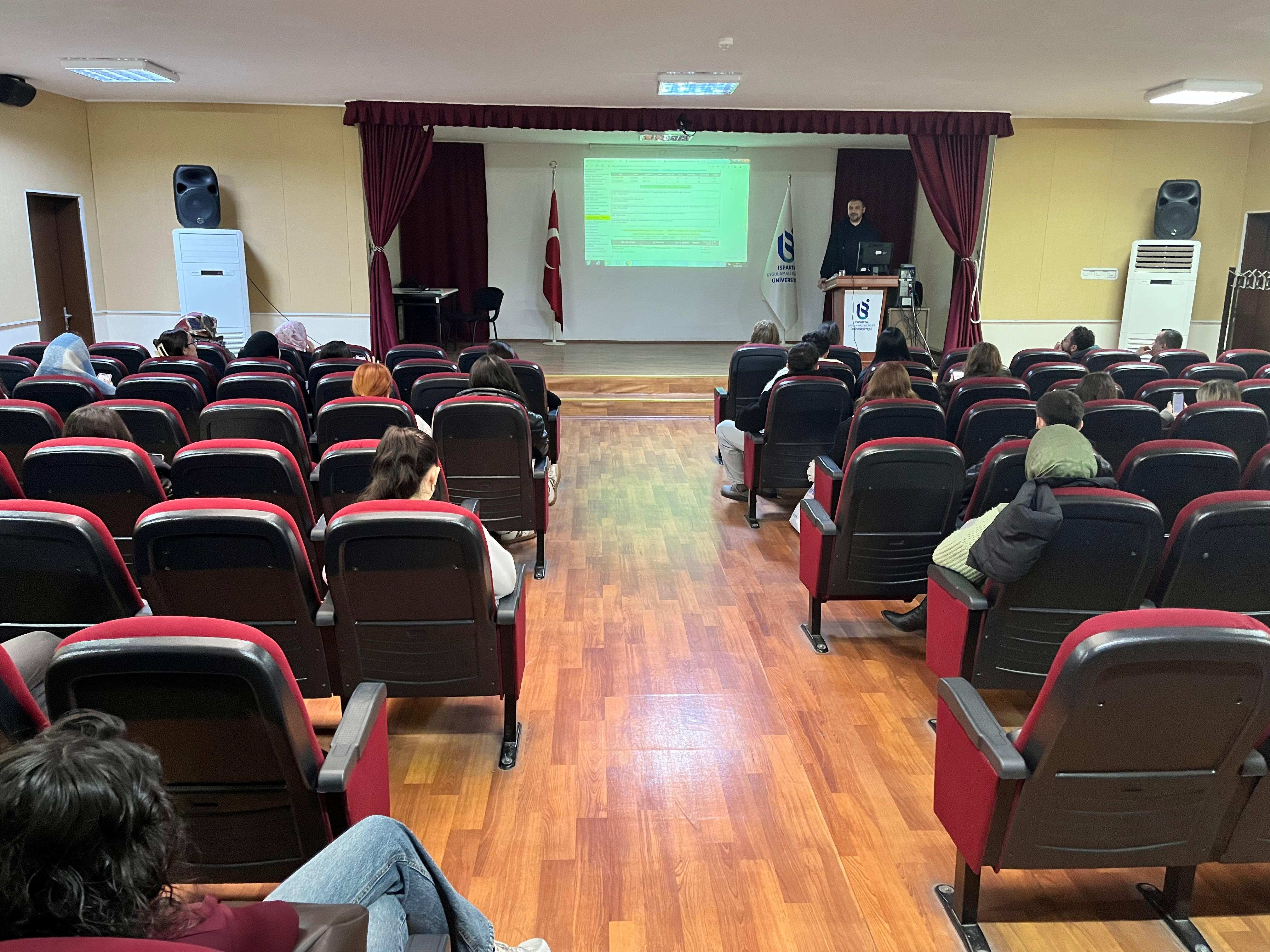 Bilgilendirme kapsamında program öğretim görevlileri Fatma DEMİR ve Ali ŞİMŞEK tarafından öğrencilere uygulamalı olarak öğrenci bilgi sistemi üzerinden sunum yapıldı. İME öncesi, eğitim sırası ve sonunda her bir adımdaki önemli aşamaları öğrencilere aktarılması açısından gayet verimli bir sunum gerçekleştirildi. Diğer yandan öğrenciler ise İME'ye dair merak ettiği konuları monolog olarak cevap bulma fırsatı buldu.