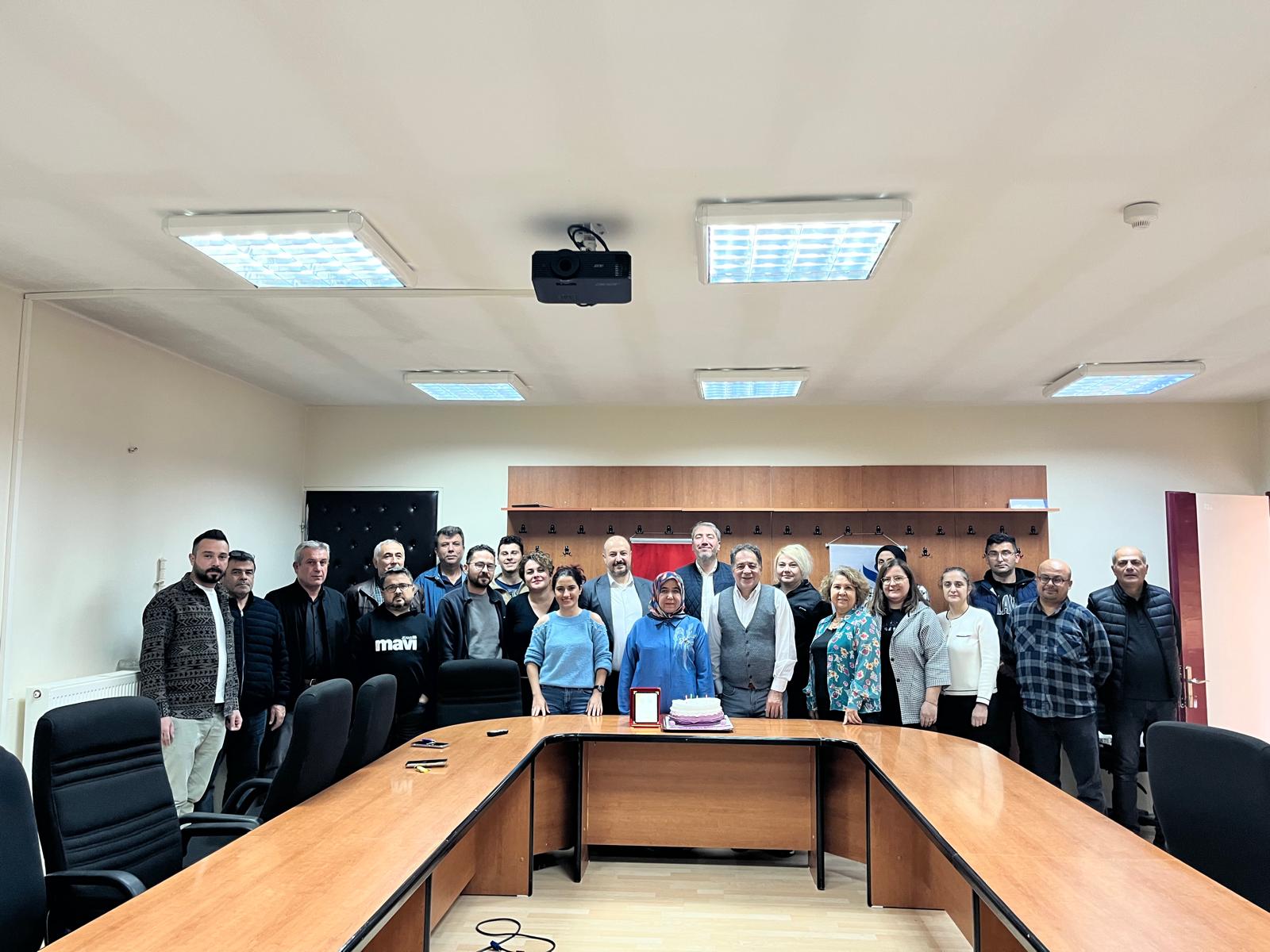 Isparta Meslek Yüksekokulu olarak idari personelimiz Fazilet AKYÜREK emekliliğe ayrılması münasebetiyle çalışma hayatına veda programı düzenlenmiştir. Bu kapsamda yüksekokul müdürümüz Öğr. Gör. Faik AY, müdür yardımcımız Dr. Öğr. Üyesi Agâh BAŞDEĞİRMEN, yüksekokul sekreterimiz Ramazan YILDIZ ve idari personellerimizin katılımıyla Isparta MYO Şehit Polis Sezgin ULUDAĞ Toplantı Salonu'nda Fazilet hanıma veda sürprizi hazırlanmıştır. Personelimiz Fazilet AKYÜREK için hazırlanan teşekkür plaketinin takdiminin ardından yaşadığı sürprizle oldukça duygulanan Akyürek "Isparta MYO'da uzun yıllar hizmet etmenin mutluluğunu yaşadığını ve veda programı için duyduğu minnettarlığı" ifade etti.